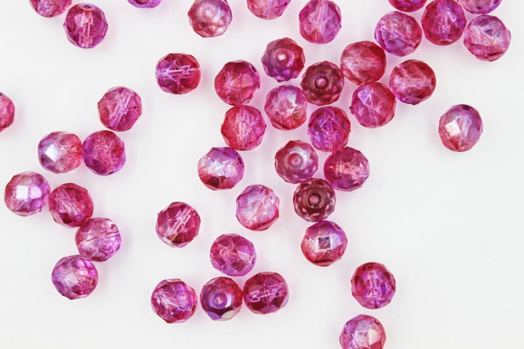 High-quality pressed firepolished glass beads with a diameter of 8 mm. They feature a finely faceted surface that gives them a subtle shine and elegant appearance. Known for their precise craftsmanship and lasting color. PLEASE NOTE: this product can be purchased as a mass - that is 800 grams.